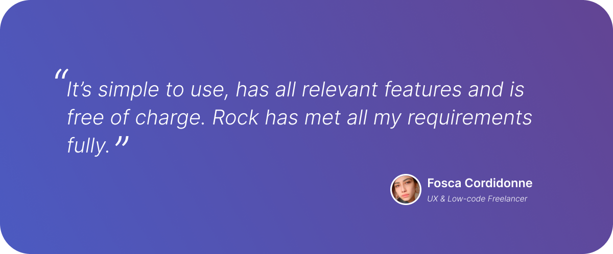 Quick and personal support is also a highlight of Fosca’s experience on Rock: ‘Last but not least, the best support experience I have ever had! The team continually seeks feedback from its users and is so easy to get in touch with.’