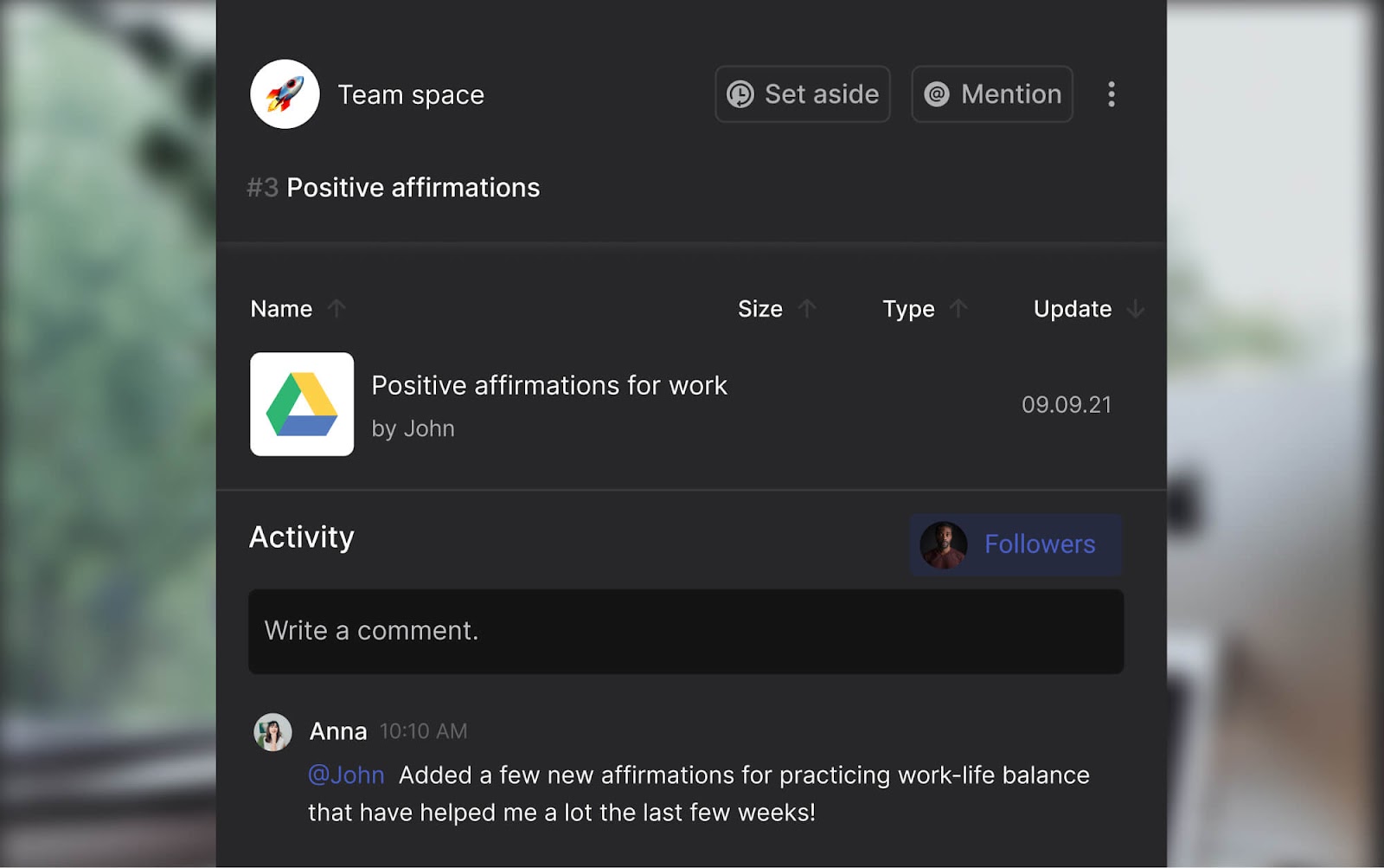 If you are looking for an effective way to share positive affirmations with your team, you can check out Rock. It’s a holistic task management and messaging tool that can help you keep tabs on your affirmations.