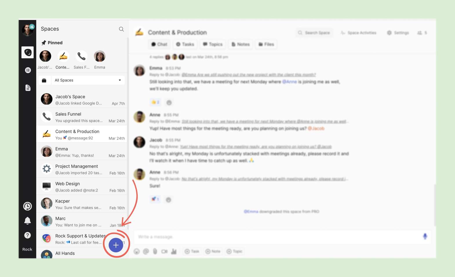 We've made creating 1:1 spaces as easy and as intuitive as possible. Follow these steps to get started.Select the big plus in the bottom left corner of your screen, near the space list.