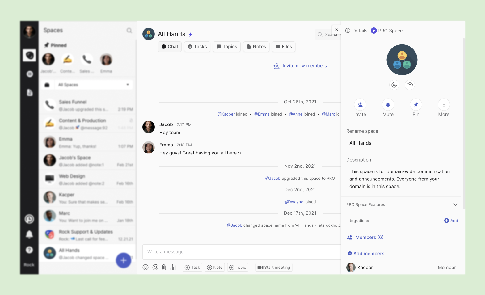 - 'All hands' space: When you sign up with a corporate domain we automatically create an All Hands space so you can more easily connect with other users under the same domain.